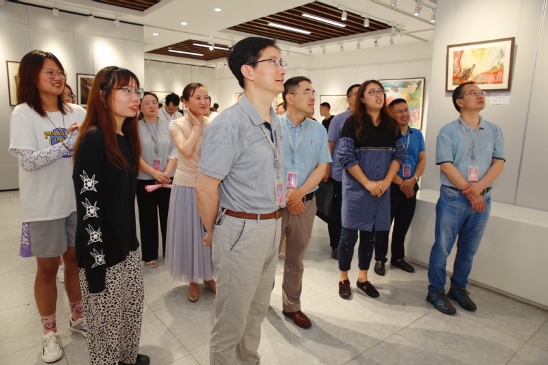 为深入贯彻落实习近平总书记提出的“学史明理、学史增信、学史崇德、学史力行”党史学习教育要求,将党史学习与专业实践紧密结合,实现专业教育和思政教育同向同行,推动思想政治教育在艺术教育、教学过程中的渗透与落实。6月15日下午在创意公司一楼举办了“传承的力量”课程思政教学成果展的开幕式。公司党委委员、副经理张震宇,公司党委委员、组织部部长高江荣,教务处处长夏冬,创意公司党政领导,还有本次教学成果展的指导老师和同学参加了此次开幕式。