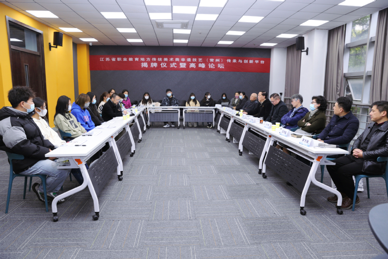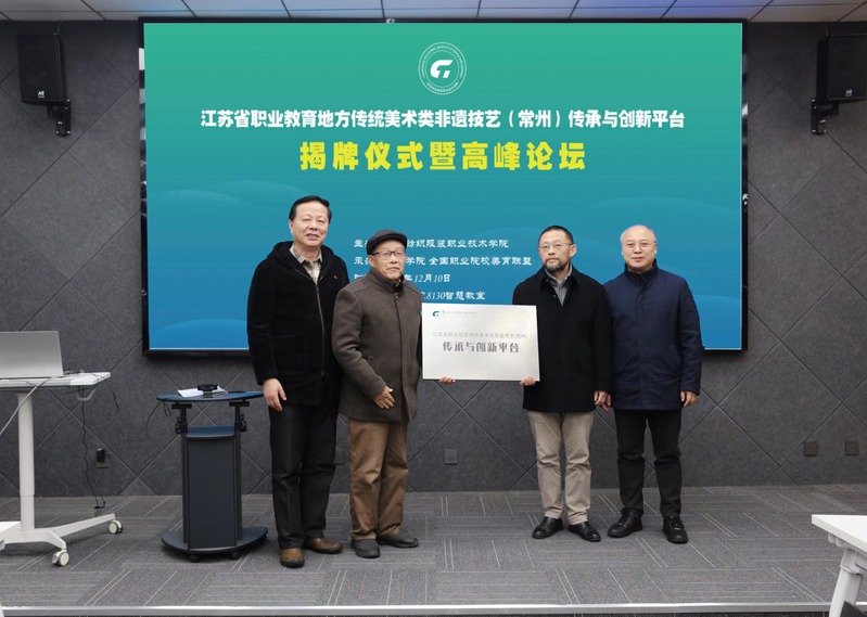 为贯彻落实党的二十大会议精神,坚持传承中华优秀传统文化,激发文化创新创造活力。2022年12月10日,由常州纺织服装职业技术公司主办,创意公司、全国职业院校美育联盟承办的“江苏职业教育地方传统美术非遗技艺(常州)传承与创新平台”揭牌仪式暨高峰论坛在创意公司8号楼举行。