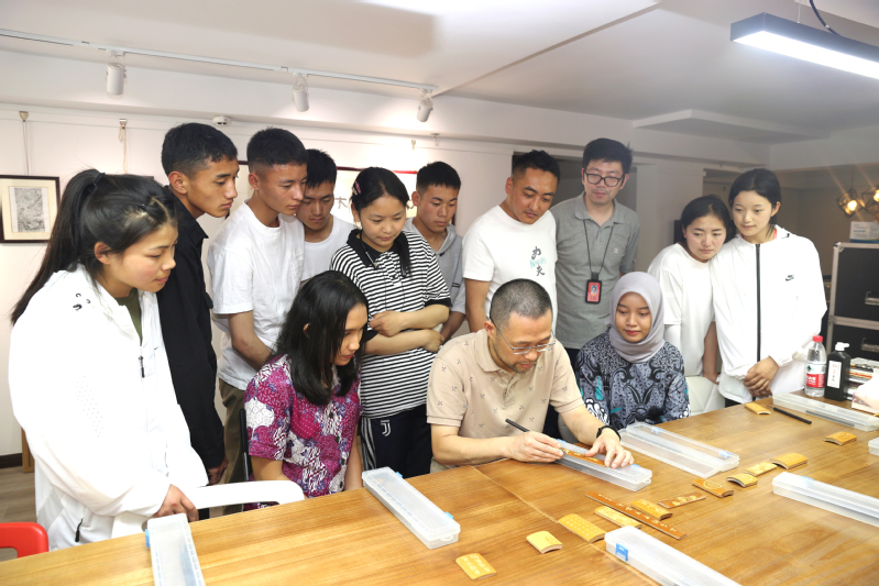 活动首先播放了本次研学班几天学习过程中的精彩瞬间,本次研学活动旨在加强不同公司之间的交流,促进师生间的互动与合作,提升公司产品质量。海南州职业技术公司师生从6月12日开始在公司进行一周的研学活动,包含了手工艺品、泥塑课程,走访调研了武进博物馆、徐氏竹刻博物馆、东方盐湖城、青果巷,梳篦博物馆等地方,可谓是收获满满。师生们饶有兴趣地观看了视频。