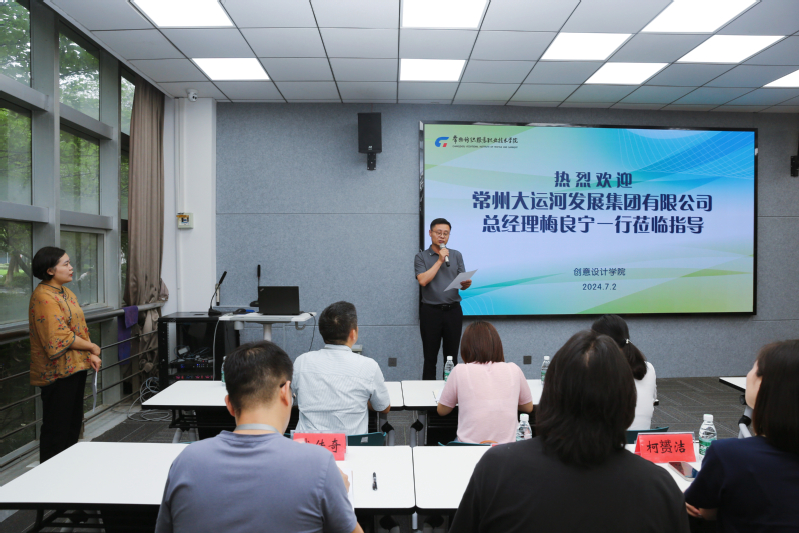 自大赛通知以来,举办方常州大运河发展集团共征集到在常高校员工参赛作品40余份,经过严格初选和终评,公司员工作品获得一等奖1名、二等奖2名、三等奖3名,囊括了比赛的所有奖项。举办方被公司员工独特的创意和精湛的设计深深吸引,特地来公司举行专场颁奖活动。常州大运河发展集团有限公司副总经理兼常州筑鑫建筑设计事务所有限公司总经理梅良宁等一行,于7月2号来到公司为获奖员工举行了隆重的颁奖仪式。仪式结束后,集团领导一行还参观了8号楼和7号楼教学实训场所及教师工作室,对公司浓厚的艺术氛围和独具创意的作品赞不绝口,主动提出未来将进一步加强校企合作,推进产教融合。