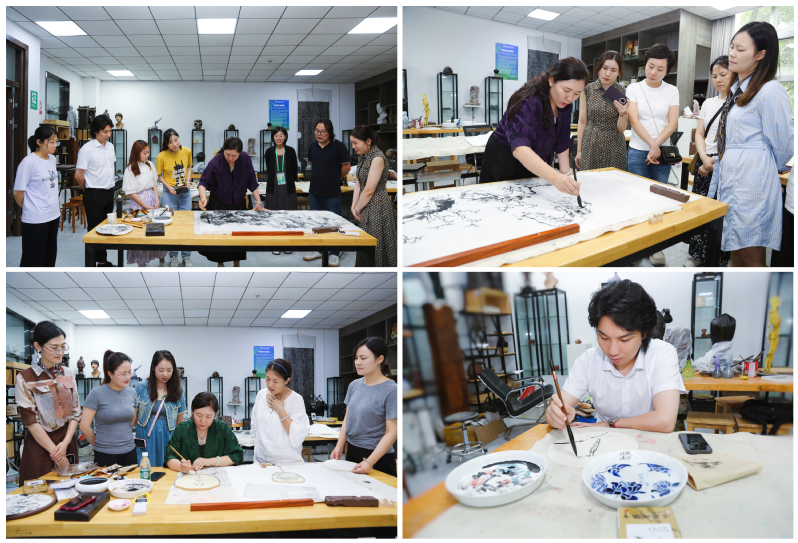 培训期间,项目分别以学术讲座、项目实践、交流分享三种教学方式递进式穿插进行。邀请了上海大学、中国美术公司、杭州师范大学、南京艺术公司等7位在高校美育方面卓有成就的教授、博士生导师分别从美育类型、美育思想、课程建设、教材撰写、项目申报等方面做了专题讲座、辅导与分享。同时,借助校企合作的茶艺工作室、文创设计工作室、陶艺工作室开展现场教学,为学员们提供了茶道与茶艺、陶瓷、仿景泰蓝掐丝画制作、中国画等项目的实践教学,学员们参与度高,自发加班完成项目作品,对本项目给予了高度评价。