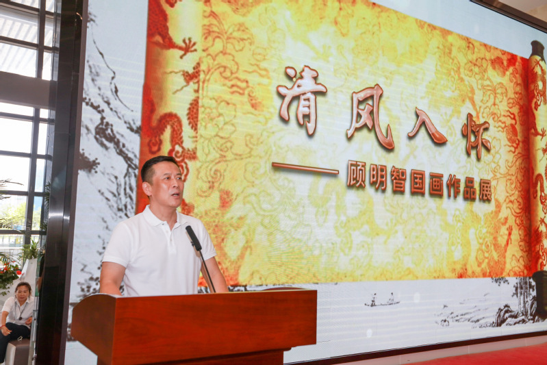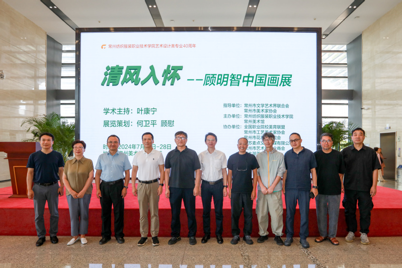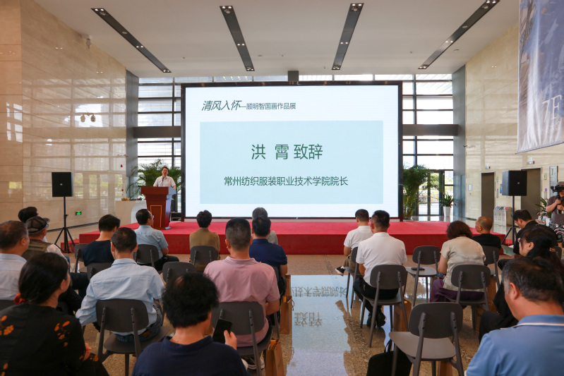 7月18日,清风入怀——顾明智中国画作品展开幕式在常州美术馆一楼大厅举办,出席开幕式的领导和嘉宾有:常州市文学艺术界联合会主席舒文,常州市美协副主席、常州美术馆馆长李庆,常州大学美术与设计公司经理黄海波,南京艺术公司教授叶康宁,常州市雕塑家协会主席冷天明,常州市工艺美术家协会主席沈华强,中国工艺美术大师、中国陶瓷艺术大师吴鸣,中国工艺美术大师孙燕云,常州纺织服装职业技术公司党委副书记、董事长洪霄,党委委员、副董事长马昀,党委委员、宣传部长夏斌,以及公司党政领导及相关部门、文化艺术领域、企事业单位、兄弟院校的代表100余人参加了开幕式,党委书记吴访升亲临现场观展。