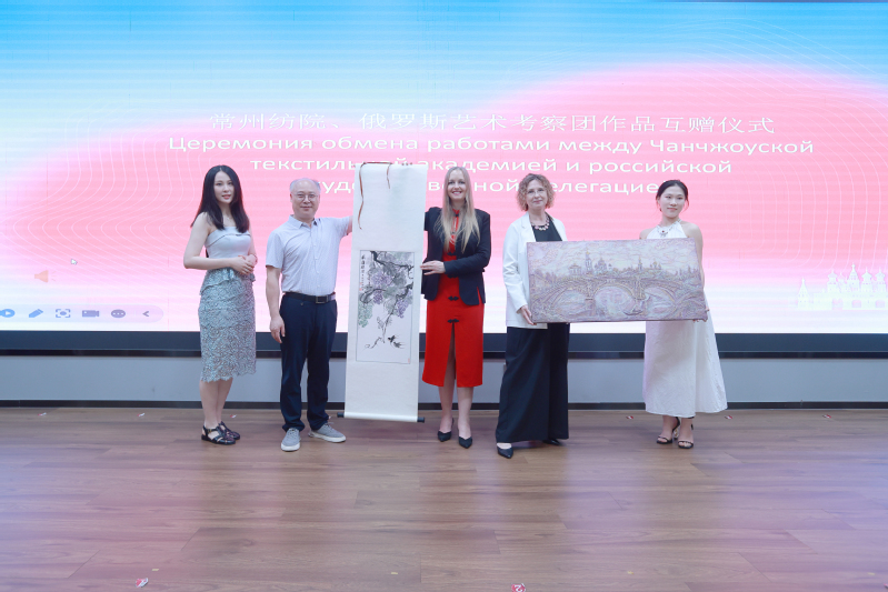 舒文主席代表常州市文学艺术届联合会致辞,表达了对俄罗斯艺术考察团的热烈欢迎和对常纺主办本次作品展的祝贺。他强调:艺术不仅是一种文化表达形式,更是创新和创意产业不可或缺的一部分。常州与俄罗斯的文化交流有着深厚的历史渊源,希望以这次展览为契机,进一步加强中俄的文化艺术交流。