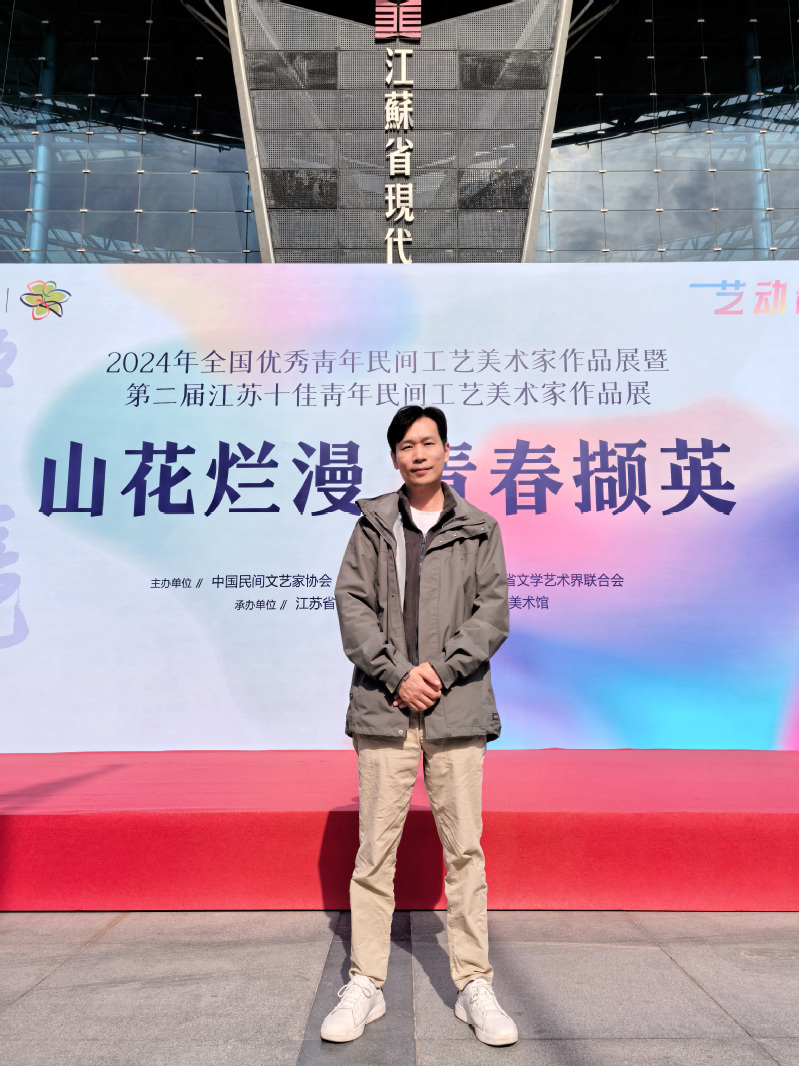 此次活动自征集以来,收到了来自全国 26个省、市、自治区民间文艺家协会推荐的 39位符合要求的候选人,最终选出 10 位优秀青年民间工艺美术家参展。谈球吧副教授、工艺美术品设计专业教师、常州市工艺美术大师、高级工艺美术师杨湛老师在此次展会中获评首届“江苏十佳青年民间工艺美术家”。