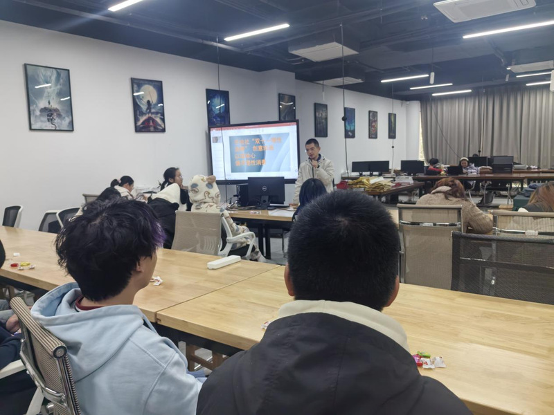 活动伊始,新一届成员们便迅速集结,围绕“双十一理性消费”这一主题展开了热烈的讨论。大家各抒己见,思维的火花不断碰撞,为后续的创作奠定了扎实的基础。在创作过程中,他们或独自冥思苦想,精心构思每一个画面细节,力求将理性消费的理念以最生动形象的方式呈现出来;或三两成群,互相交流探讨,彼此分享着独特的创意和绘画技巧,共同攻克创作中遇到的难题。