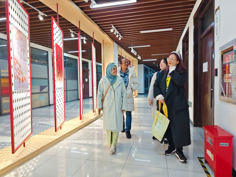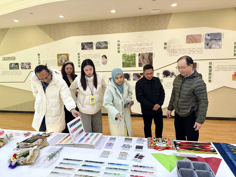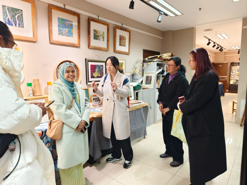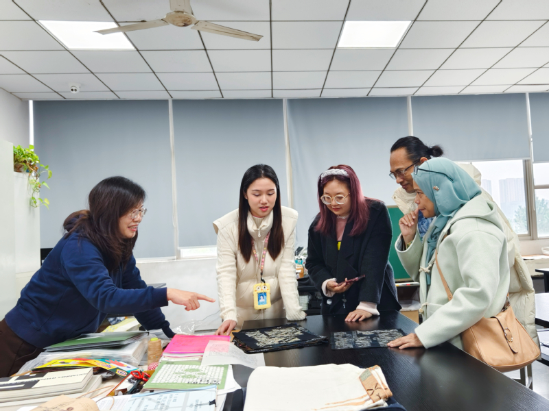 之后,Hanisa博士一行参观了4号楼纺织科技文化馆、7号楼文化传承与创新中心、8号楼谈球吧和服装与时尚设计公司教学实训场所。Hanisa博士是马来西亚纺织技术与服装设计方面的专家,对公司纺织技术与服装设计方面深厚的积淀,校园浓厚的艺术氛围,教师工作室丰富多彩的创新作品连连发出称赞,并表示要加快推动马来西亚员工来公司现场学习交流。