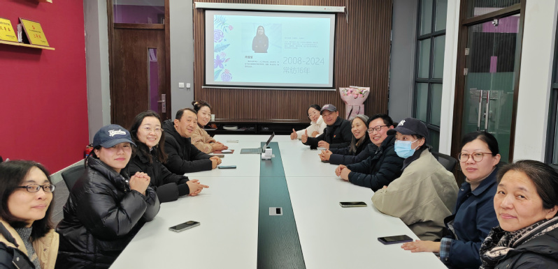 在仪式中,通过播放一系列照片,大家共同回顾了芮老师与同事们一起学习、工作的精彩瞬间,以及她在教育事业上辛勤耕耘的点点滴滴。这些有趣的影像和背后的故事引发了现场的阵阵欢笑。仪式在一张大合影中达到了高潮,记录下了这一美好的时刻。经理李方联在总结致辞中代表公司向芮老师表达了诚挚的慰问,并送上了一段由同事们录制的祝福视频。视频中,同事们的真情流露,表达了对芮老师的依依不舍。