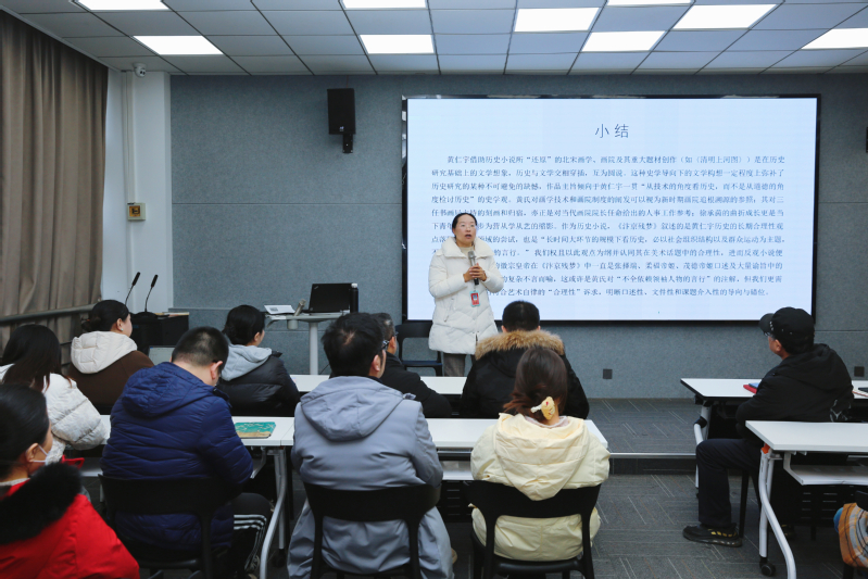 为树立干事创业的新风正气,营造浓厚学术氛围,谈球吧发起成立了“弘美读书会”,旨在弘扬中华优秀传统文化,关注艺术与科技领域前沿动态,提高教学科研水准,培养高素质技术技能人才,促进专业建设高水平建设,实现公司高质量发展。2025年1月7日下午,在8130智慧教室举办了“寻找名画遗失的细节——黄仁宇《汴京残梦》读思”分享会。分享人为谈球吧副经理,澳门城市大学在读博士何卫平副教授,谈球吧30余名教师参加了分享活动。