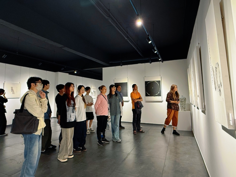 在吴鸣艺术馆内,师生们被吴鸣大师自二十世纪八九十年代至今的数百件紫砂与书画代表作深深吸引。在农工党党员、高级工艺美术师吴丸的引领讲解下,沉浸式感受中国陶瓷艺术大师吴鸣的创作理念与陶艺文化的当代价值,将党建教育与文化实践深度融合。