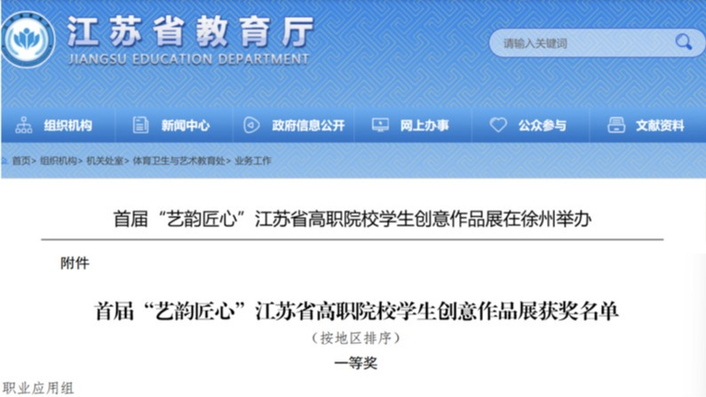 公司学子在“艺韵匠心”首届江苏省高职院校员工创意作品展中荣获...