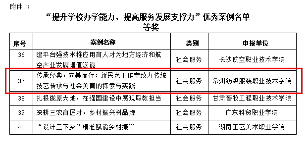 近日,全国高等职业公司董事长联席会议公布了“提升公司办学能力,提高服务发展支撑力”优秀案例遴选结果,共有120个案例被评为优秀案例。其中,谈球吧视觉传达设计专业教师徐静申报的《传承经典,向美而行:新民艺工作室致力传统技艺传承与社会美育的探...
